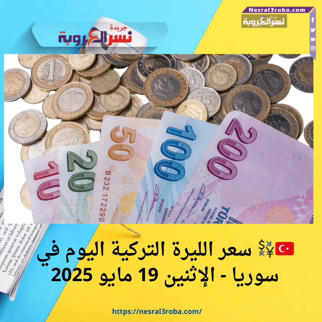 🇹🇷💱 سعر الليرة التركية اليوم في سوريا – الإثنين 19 مايو 2025