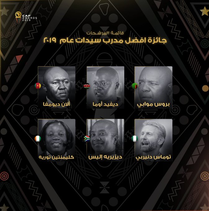 وضمت قائمة المرشحات لجائزة أفضل مدرب كرة القدم للسيدات آلان جومفا (الكاميرون) و بروس موابي (زامبيا) و كليمنتين توريه (كوت ديفوار) و ديزيريه إيليس (جنوب أفريقيا) و ديفيد أوما (كينيا) و توماس دينربي (نيجيريا).